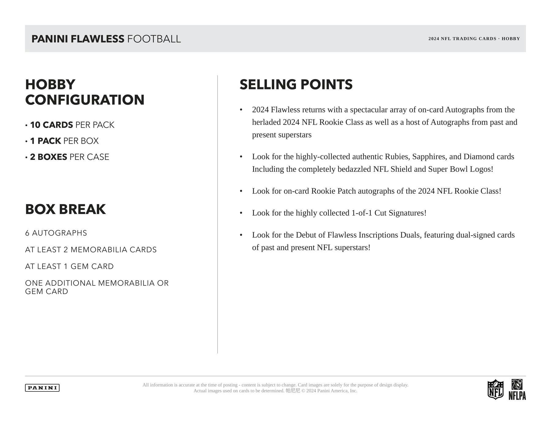 2024 Flawless returns with a spectacular array of on-card Autographs from the herladed 2024 NFL Rookie Class as well as a host of Autographs from past and present superstars
