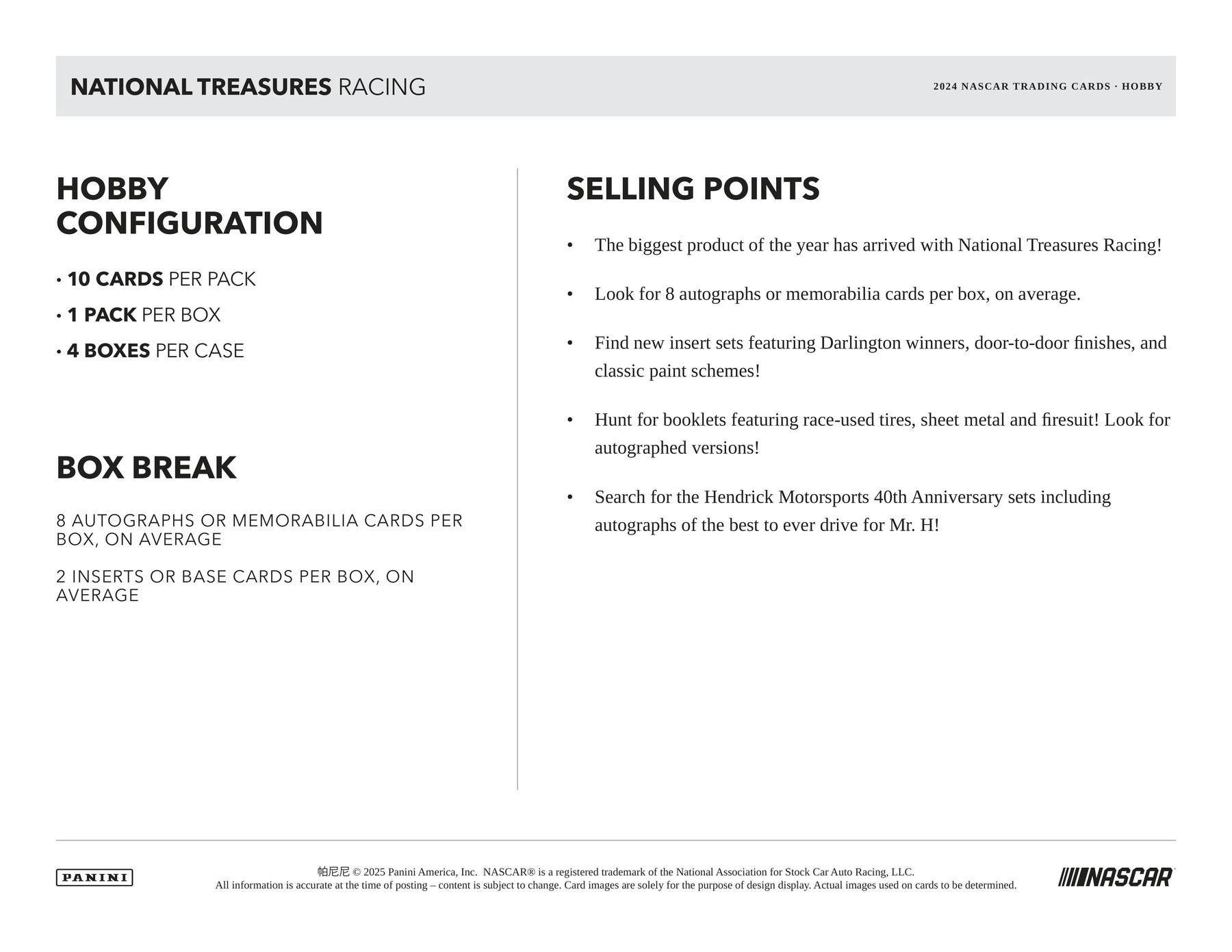 2024 Panini National Treasures Racing Hobby Box (4/18)