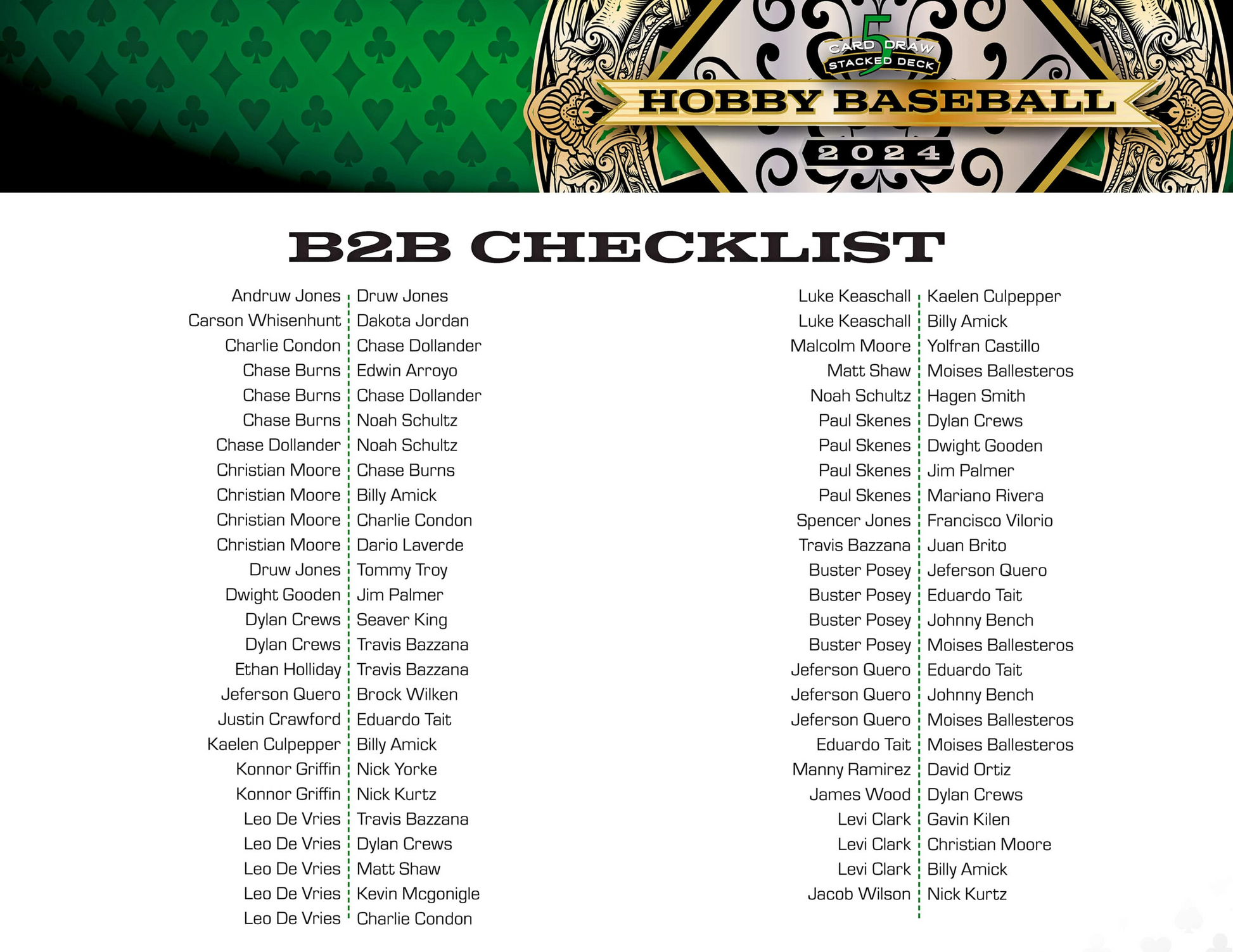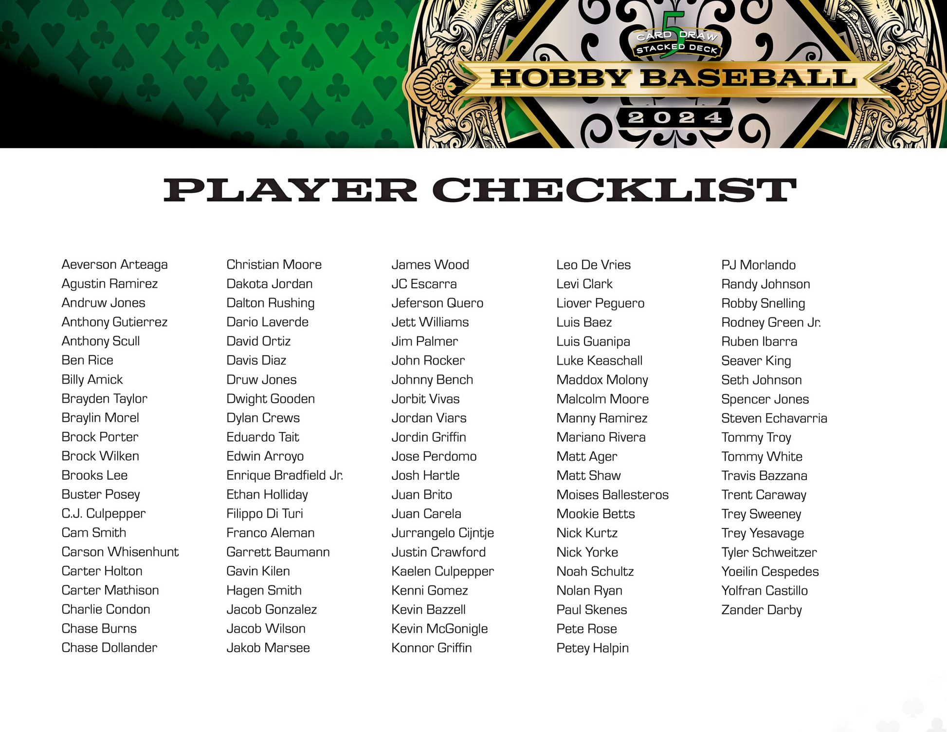 - A high-octane, collector-driven product that builds on the momentum of our Stacked Deck brand and delivers one of the most loaded baseball checklists of the year!