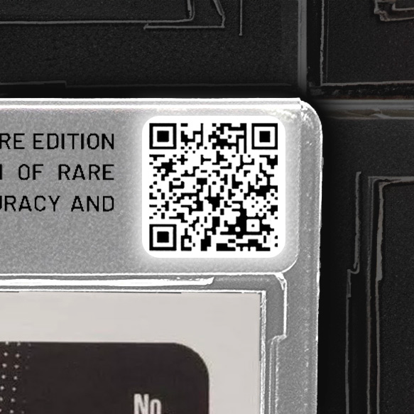 Each card features a unique QR code that links to a report on the Rare Edition website. This report includes details such as the card's information, assigned grade, certification number, and grading date.