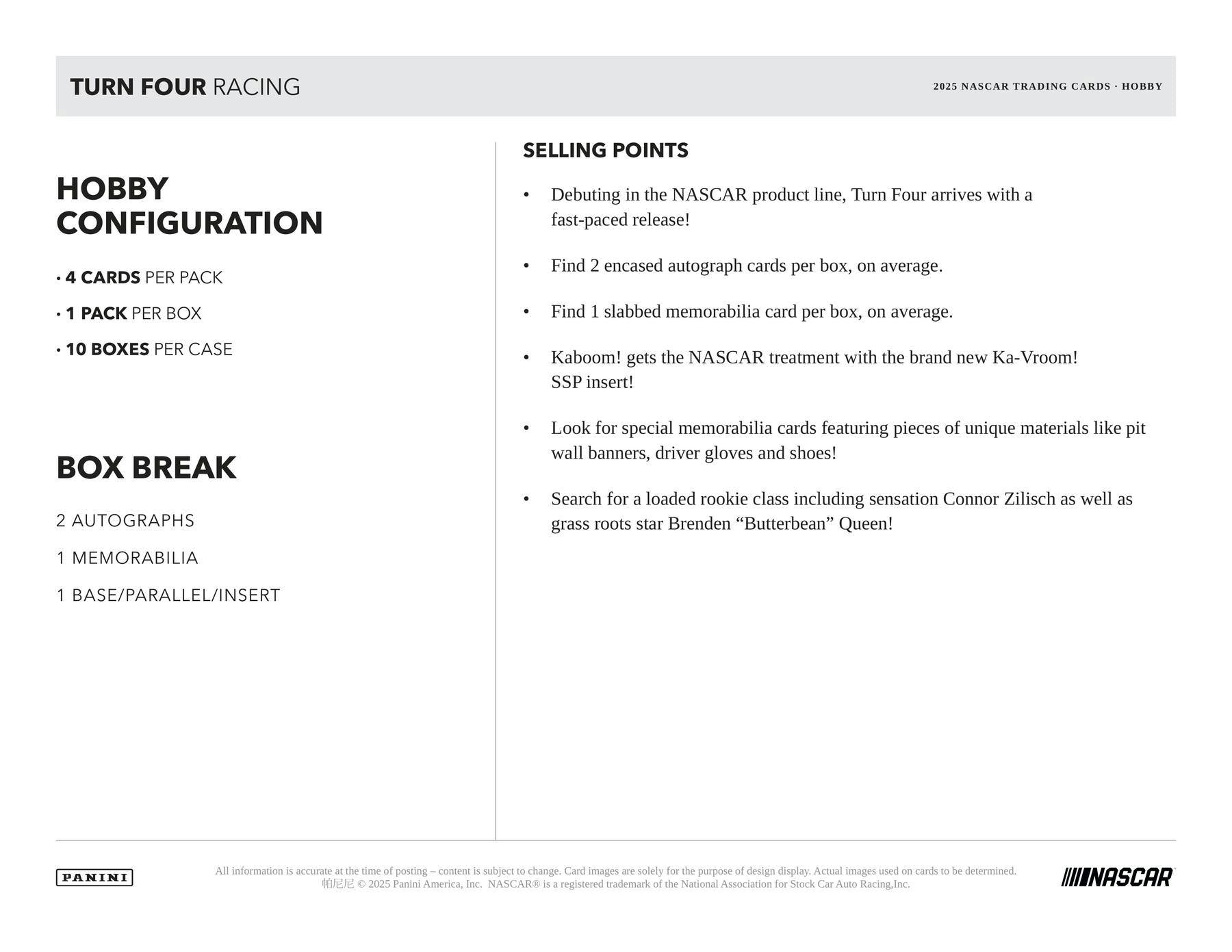 2025 Panini Turn Four Racing Hobby Box (10/3)