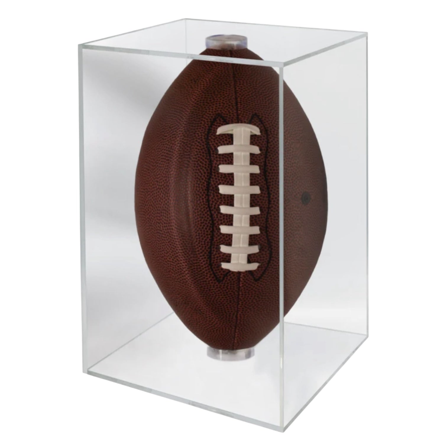 Protect your valuable memorabilia with Ultra PRO's Football Display with UV blocking additives added. This display is designed with a built-in ball cradle to hold the football in place either vertically or horizontally and is sized to hold a regulation professional football or regulation college football. This display fully protects and encloses your memorabilia in a 2-piece slide design made of non-PVC, acid free, ultra clear materials. The inner dimensions of the display are 7" x 7" x 11-1/4". One of the most popular displays in the industry, and a standard for many collectors, now includes new features to hold regulation professional and regulation college football securely in place.